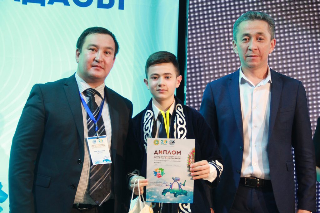 Осы орайда, мемлекеттік тіліміздің мәртебесінің дамуына ықпал ететін «Жарқын болашақ» қазақ тілі олимпиадасына мен екі жыл қатарынан қатыстым. Өткен жылы аталған республикалық байқаудың «Жас ғалым» номинациясының I орын иегері атанған болатынмын.