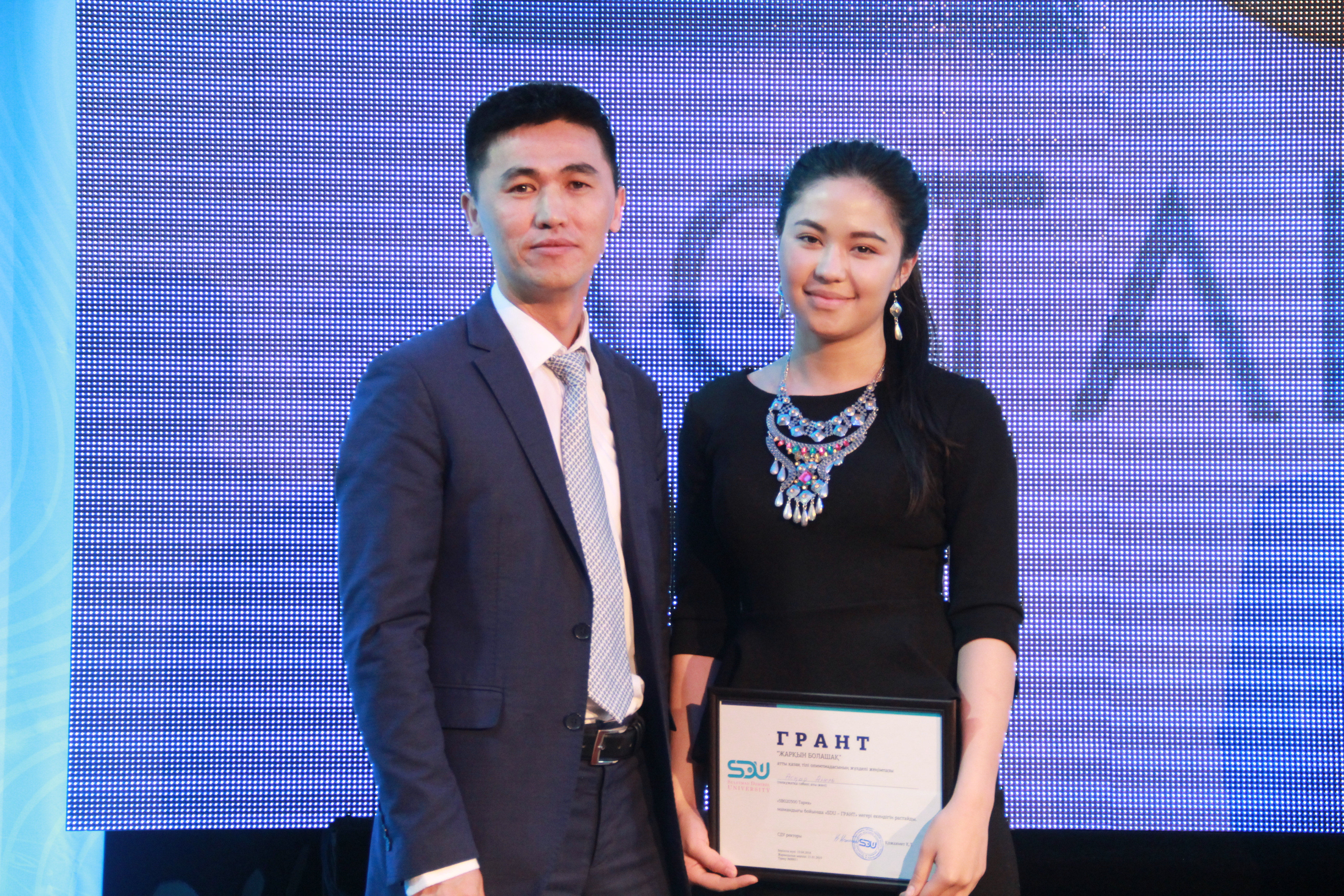 «Жарқын болашақ» олимпиадасында 9 жылдың ішінде жеңіске жеткен 198 оқушыға ЖОО-ның білім гранты табысталған. Еліміздегі құны ең жоғары олимпиада десек болады. Жыл сайын 20-ға жуық грант бөлетін «Жарқын болашақтың», Қазақ тілінің бас демеушісі Сүлеймен Демирел атындағы университетті биыл да 16 грант бөлген екен. Бұл аталмыш университеттің мемлекеттік тіл — қазақ тілінің дамуына қосқан толағайдай үлесі деп білеміз. Университет басшыларының, оқытушылар қауымының қазақ ұлтына, қазақ тіліне деген оң көзқарасы, жанашырлығы, берік ұстанымы екені айтпаса да түсінікті шығар. Ал осы грантты табыстау сәтте қуаныштан көздеріне жас алған жеңімпаздарды көргенде, университеттің оқушылар арасында қаншалықты беделге ие болған көруге болады.