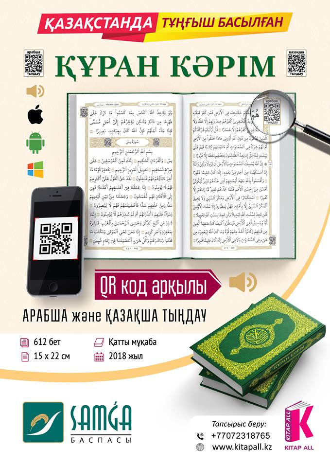 Қарайған жүректерге нұр беретін кітаптың пайдалануға қолайлы нұсқасының жарыққа шыққанын қуана хабарлаймыз. Тапсырыс беріп, құмарта оқып, шаңырағыңыздың нұрын арттырыңыз. Жақын-жұрағатқа, дос-жаранға жаңа Құранды сыйға тарту арқылы рухани күйзелістен серпілтіп, көңілдеріне шипа сыйлаңыз.
