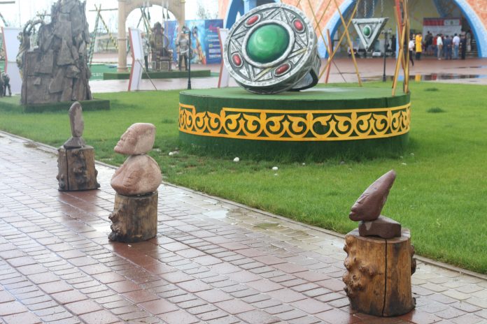 13 шілдеде Астана қалалық «Қазанат» ипподромының аумағындағы Этноауыл мәдени кешенінде Жамбыл облыстық қолөнер бұйымдары шеберлерінің жылжымалы көрмесі ұйымдастырылды. Бізде алыстан келген ағайынның мерекелік шашуынан «дәм тату» үшін асай-мүсейлерімізді арқалап барып қайтқан болатынбыз. Мерекелік думан таңертеңнен басталды. Этноауылдың кіре берісінің екі қапталындағы ақшаңқандай үйлердің ішіне Жамбыл облысынан арнайы келген қолөнер ше-берлерінің бағалы бұйымдары мен көздің жауын алатын құнды экспонаттары орналастырылған екен. Көрме заттары ішінде қазақи оюлармен өрнектелген қыш ыдыстар, құрал-жабдықтар, əшекей-бұйымдар, қазыналы кітаптардан бөлек, халықтың көзайымына айналған «Жиналмалы бесікке» ықыласымыз ауды. Бұдан ары концерт болып жатқан жабық сахнаға қарай беттедік. Ілгерілеп келе жатып жолымызда алтыбақандарды, нысана көздеп жатқан садақшы мергендерді, қыран бүркітін қолына қондырған құсбегілер мен құмай тазы баптаған аңшыларды көріп, ұлттық өнердің ұлықталып жатқандығына бір марқайып қалдық.