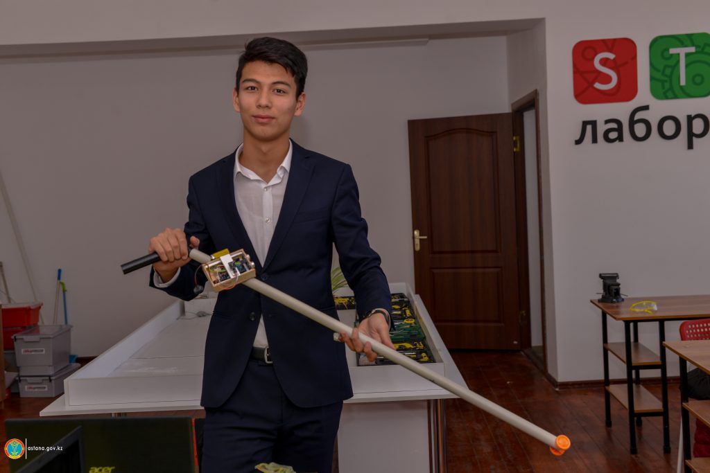 Астанадағы №73 мектептің оқушысы Әлихан Рахметов ойлап тапқан таяқ көзі көрмейтін зағип жандар үшін таптырмайтын құрал болмақ.