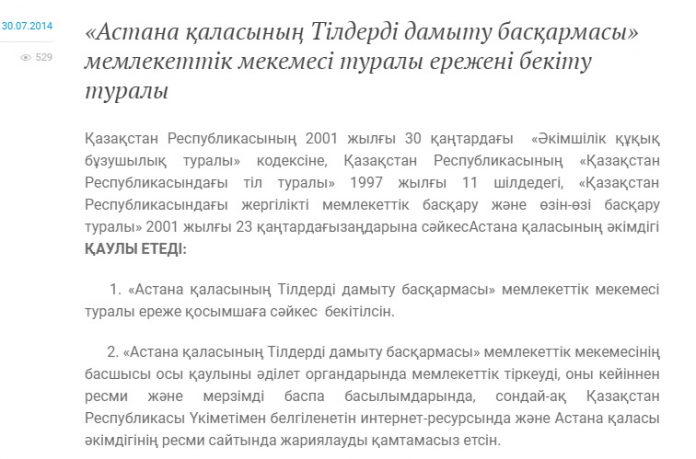 Әкімшілікті трансформациялауға сәйкес, әкімшіліктегі бірнеше басқармалар біріктірілетін болыпты. Атап айтқанда, қоғамдық даму істері, мәдениет және спорт, тілдерді дамыту және арxив ісі басқармалары біріктірілмек. Сөйтіп, Астанадағы тілдерді дамыту басқармасы жабылып, жаңа басқармаға кіріктірілмек. Қала әкімінің бұл әрекеті қазақтың қасиетті тілі үшін күресіп жүрген азаматтардың ұйқысын қашырып отыр.