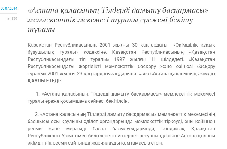 Тағы да тіл туралы жайсыз хабар. «Айқайға сүрен қосудан» аулақпыз. Бірақ шапқа ши жүгіртіп, өзім білерге салатын басшыларға айтарымыз бар. Осыдан бір апта бұрын Астана қаласының әкімі Бақыт Сұлтанов әкімшілік аппаратының кезекті отырысын өткізіп, онда қала әкімдігін трансформациялаудың екінші кезеңін талқылапты. Бұл туралы әкімшіліктің ресми веб-сайтында жазылды.
