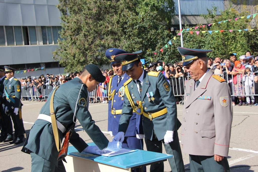 Аталған шараға әскери институттың жеке құрамы, Алматы гарнизонының әскери қызметшілері, Қарулы Күштердің ардагерлері, әкімдіктің өкілдері, сондай-ақ курсанттардың ата-аналары мен туған-туыстары қатысты. Олар жас сарбаздарды айтулы мерекелерімен құттықтап, оқуға, жауынгерлік міндеттеріне жауапкершілікпен қарап, анттарына адал болуға үндеді.